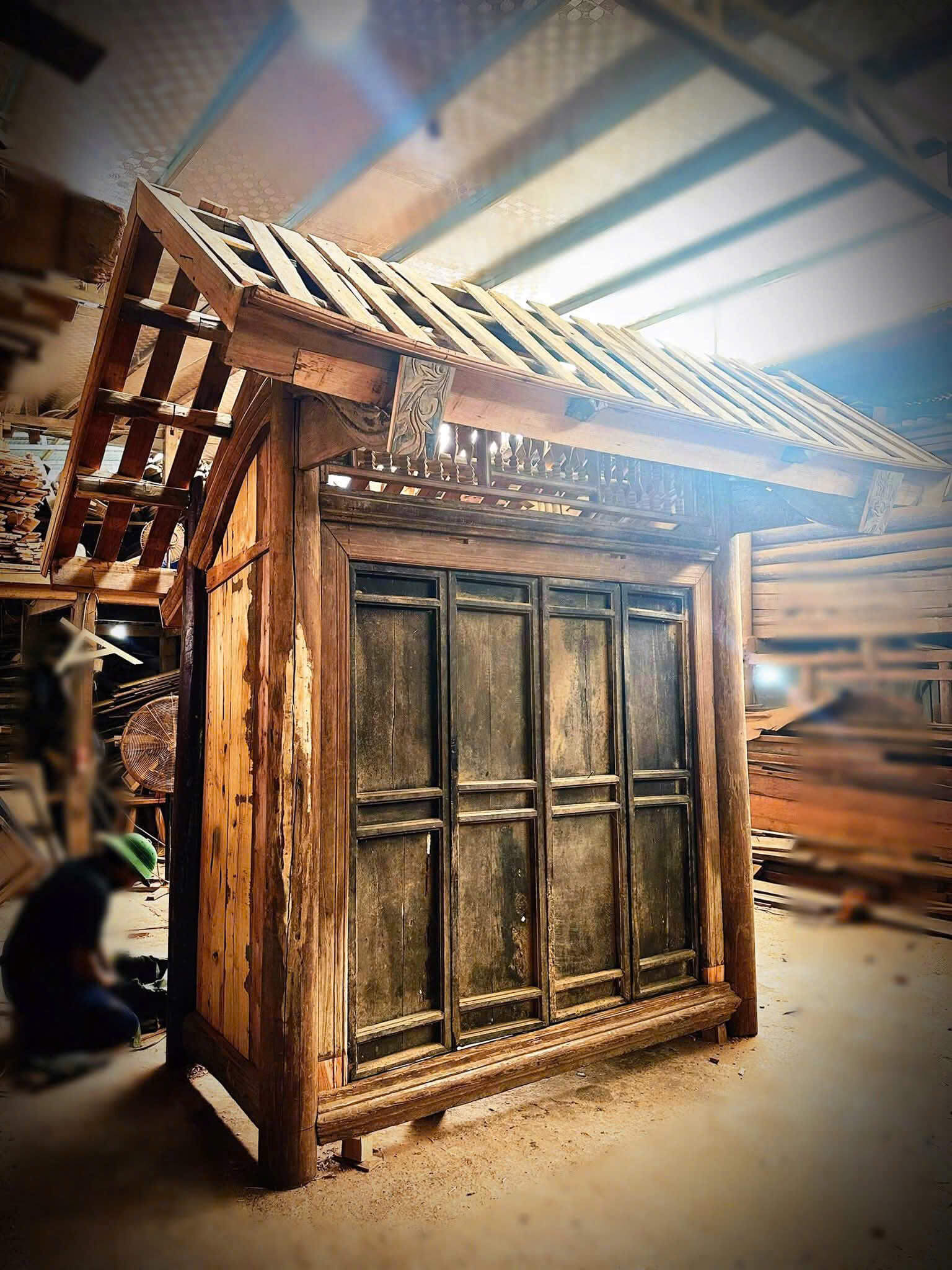 Đặt chiếc cổng này trước một nhà hàng mang phong cách ẩm thực Bắc Bộ xưa, khách bước qua đã như được dẫn dắt trở về miền ký ức: bữa cơm đầm ấm bên mâm gỗ, hương vị đồng quê, tiếng cười giòn giã. Cổng gỗ vừa mang giá trị thẩm mỹ, vừa là biểu tượng cho sự hiếu khách, mở ra không gian truyền thống để thực khách thưởng thức trọn vẹn hồn Việt trong từng món ăn.