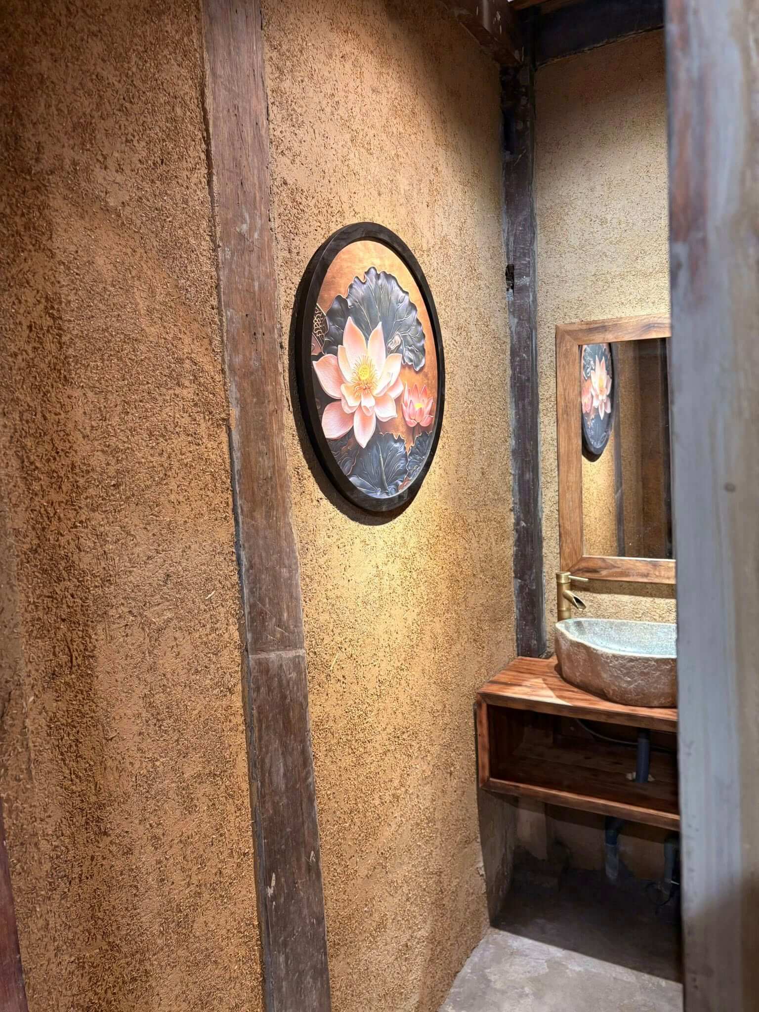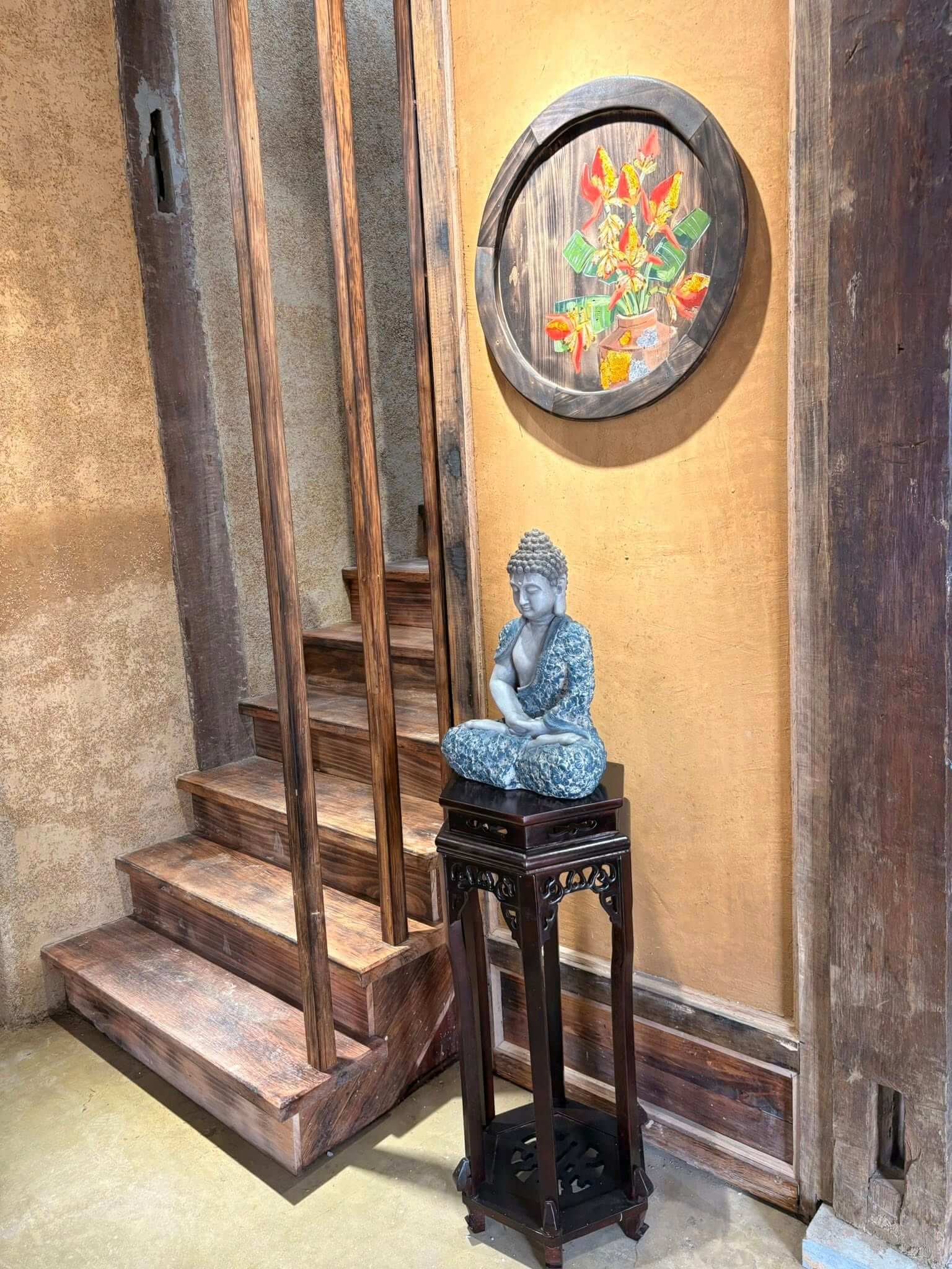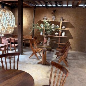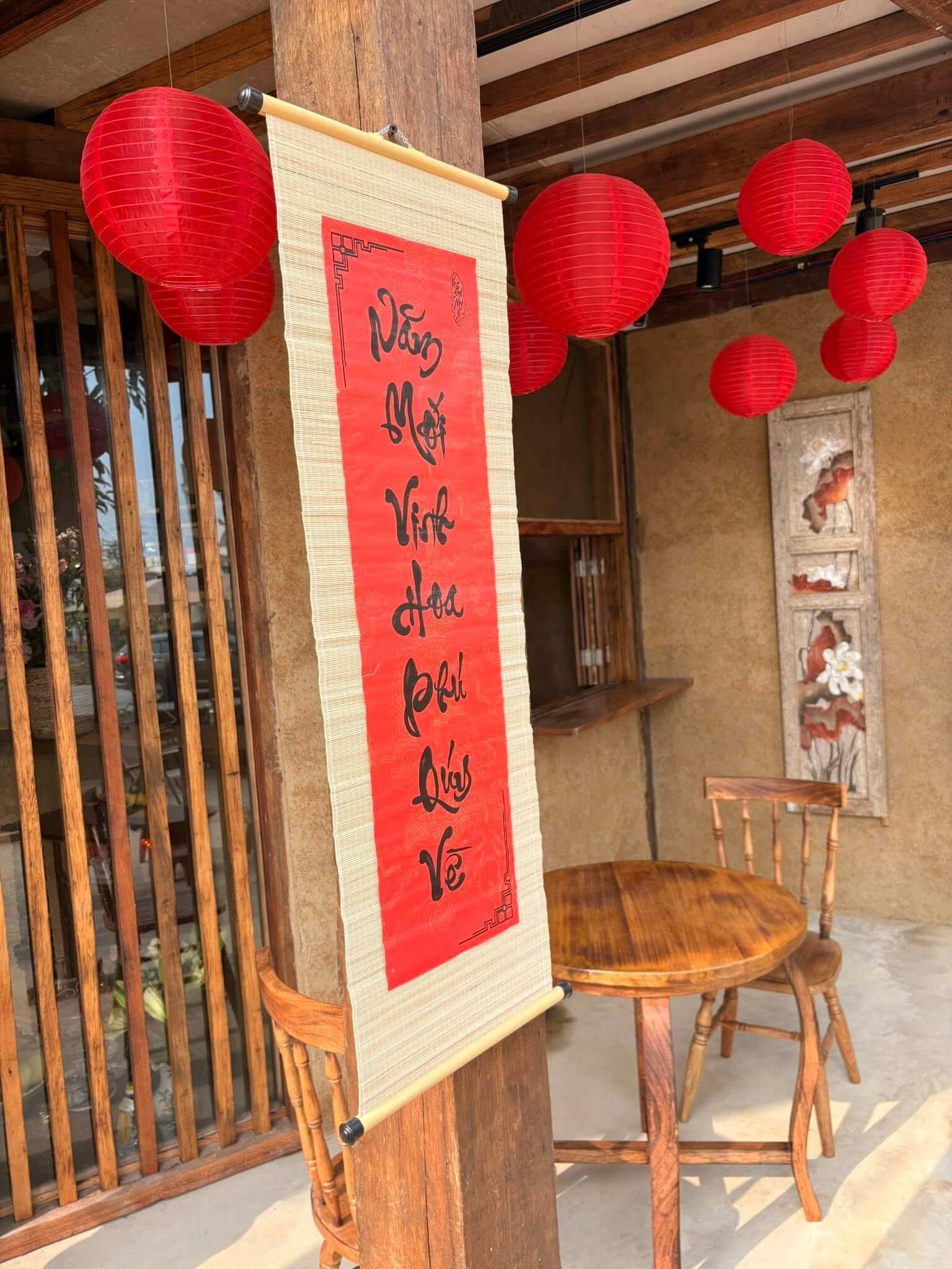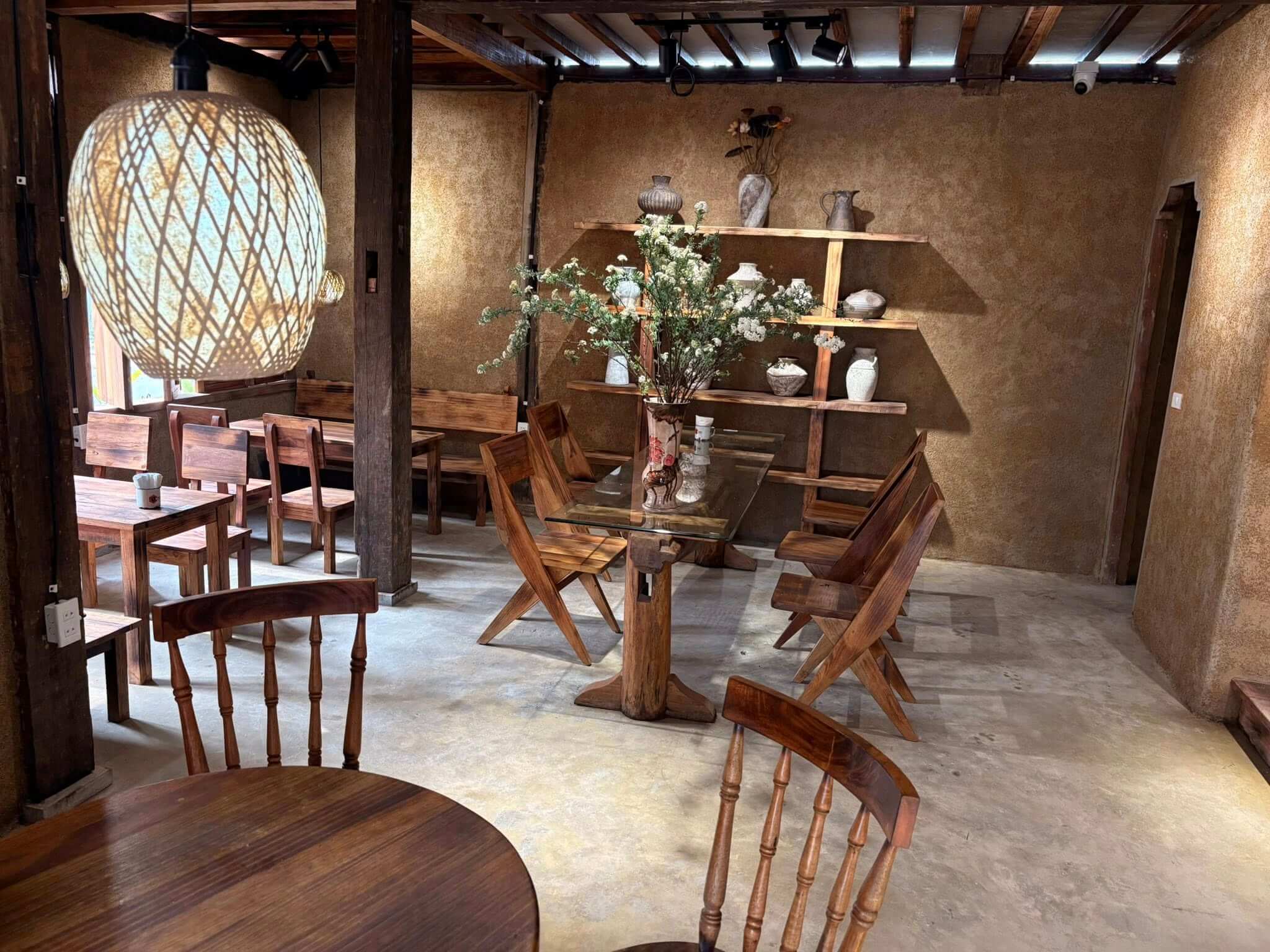 Không gian được hoàn thiện với gỗ tự nhiên mộc mạc, giữ trọn tinh thần thủ công: giản dị, gần gũi, không bóng bẩy nhưng đủ chiều sâu để cảm nhận. Chao đèn giấy kết hợp ánh sáng vàng dịu lan tỏa khắp không gian, làm nổi bật từng góc bàn, mảng tường. Điểm xuyết ...