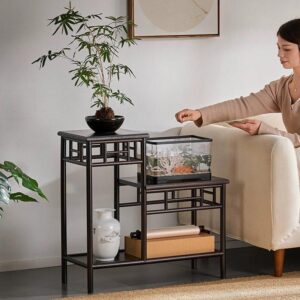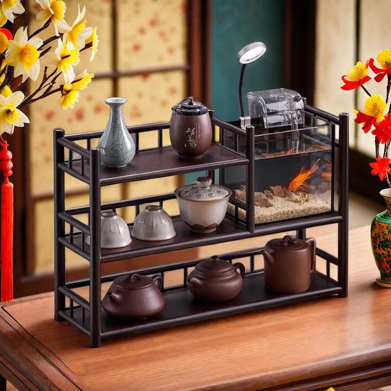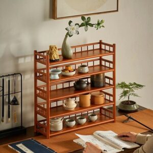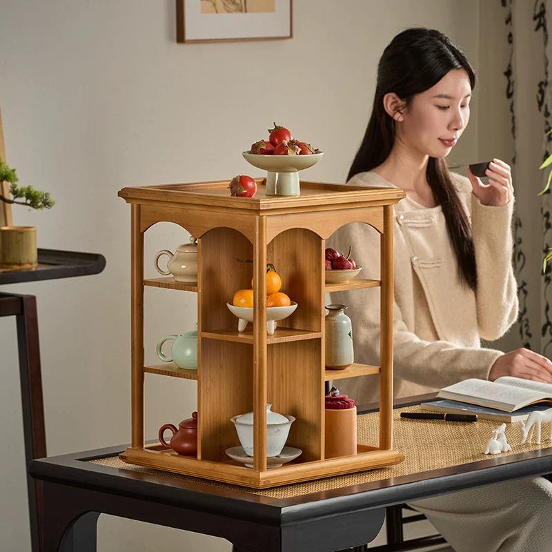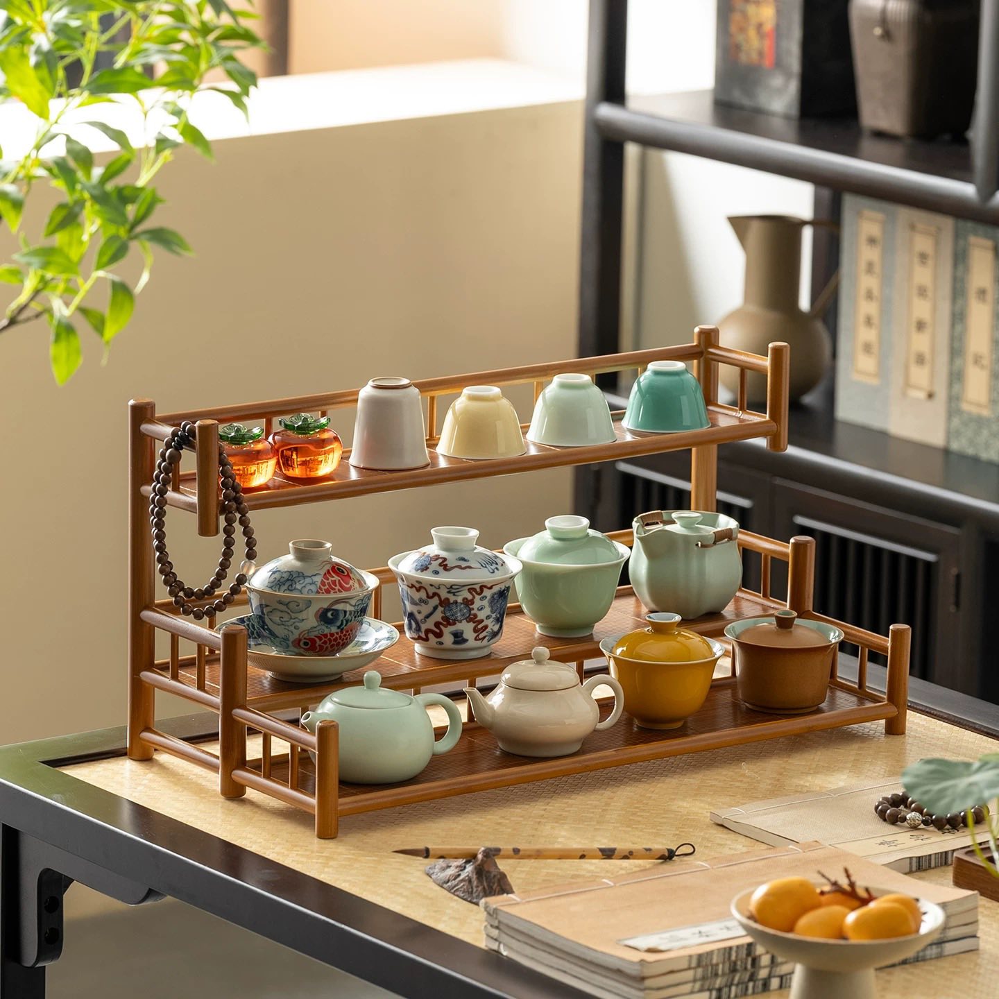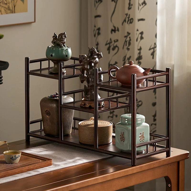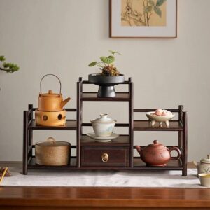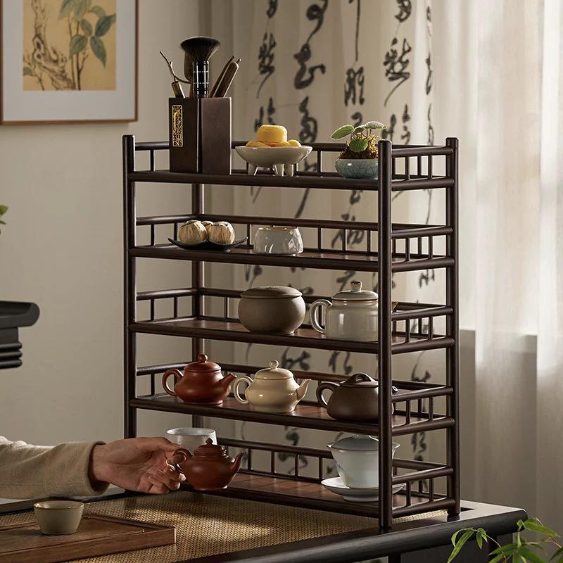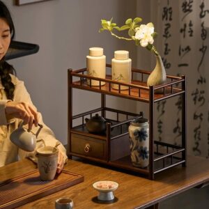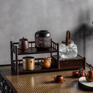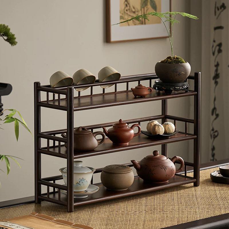 Điểm đặc biệt nằm ở sự linh hoạt: kệ có thể đặt trên bàn trà, bàn làm việc hoặc trong một góc nhỏ của căn phòng, tạo nên một “góc trà” riêng tư và tinh tế. Dù không gian lớn hay nhỏ, sản phẩm vẫn đủ khả năng trở thành điểm nhấn nhẹ nhàng nhưng đầy chiều sâu.