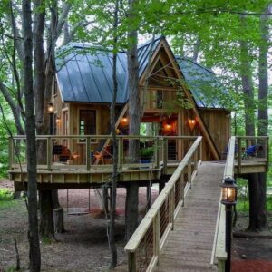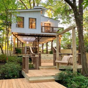 Nhà trên cây toát lên vẻ mộng mơ nhiều hơn là thực tế của những ngôi nhà thông thường, vì thế nhà trên cây đã xuất hiện nhiều trong mô hình kinh doanh các hình thức homestay và trở thành điểm dừng chân cho những du khách mộng mơ. Trải nghiệm ở trong nhà trên cây hay còn gọi là tree house rất mới lạ-vừa thân thiện vừa hòa vào với thiên nhiên hoang dã.